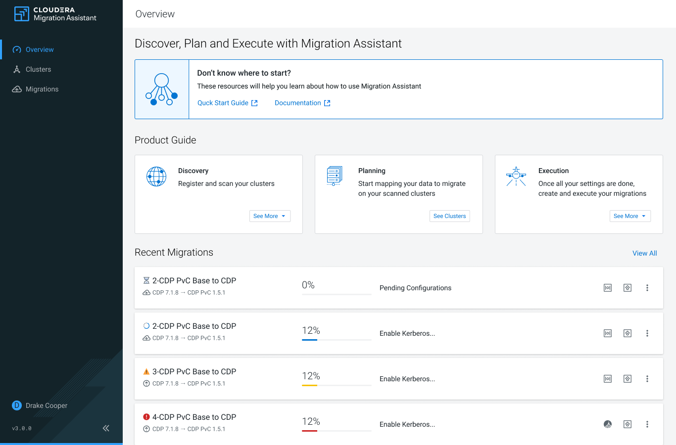 Cloudera Migration Assistant Home Page – Image courtesy of Cloudera